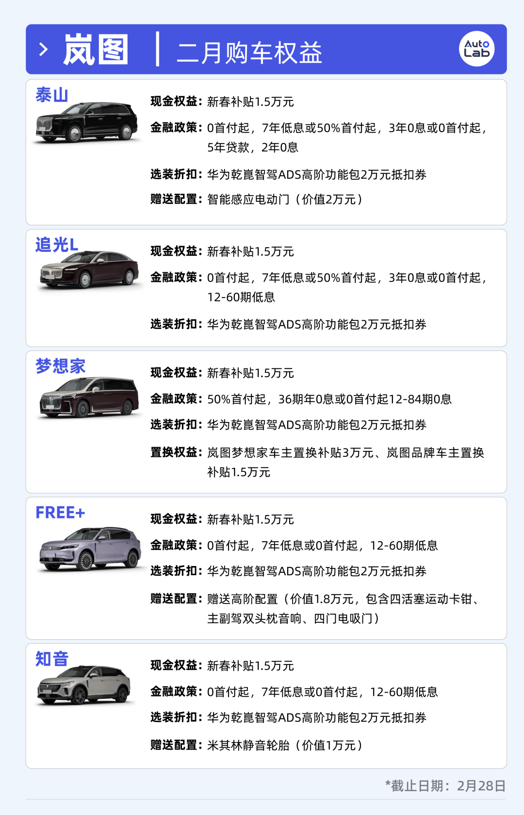 要是说1月各家车企还在围绕购置税补贴你来我往,那到了2月,战场照旧明显升级。