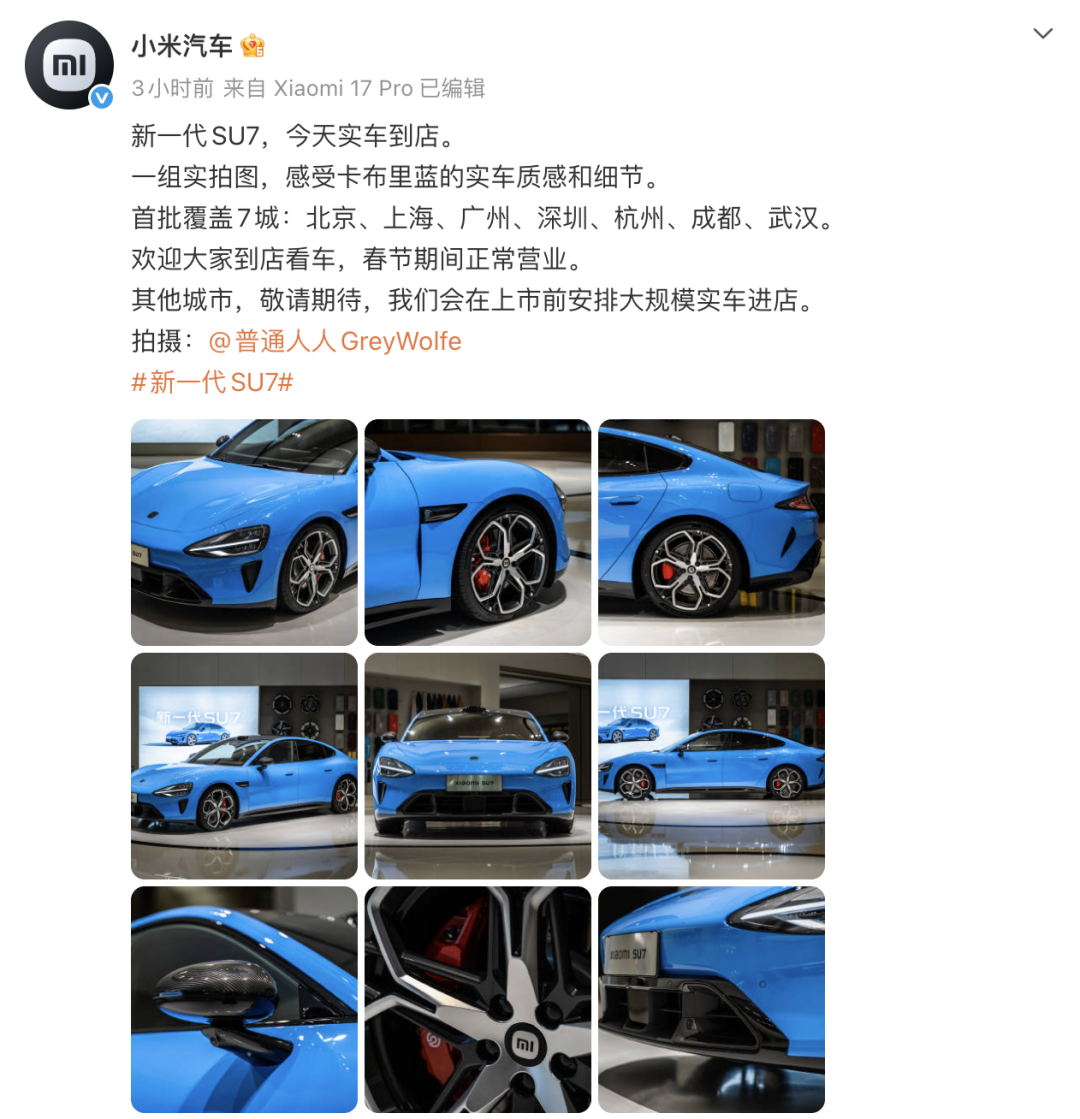 同期,全新一代SU7展车也照旧于2月13日起不绝进店,目下照旧开启了预定,并瞻望会在四月矜重上市。