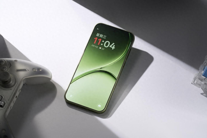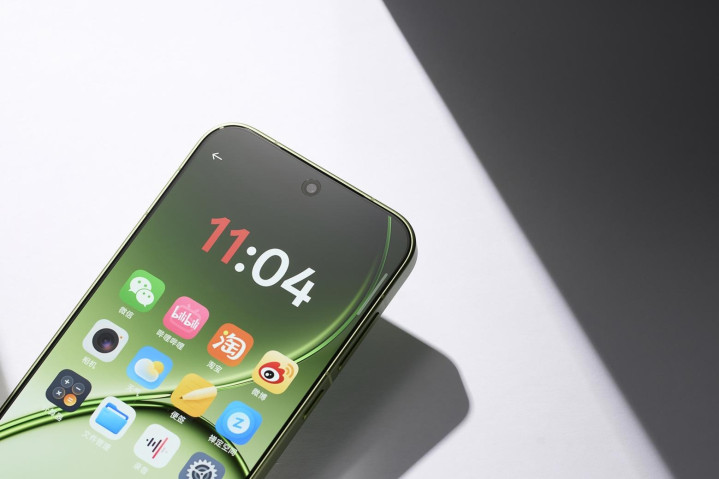 一加手机 · 绿色一加手机正面,走漏期间11:04