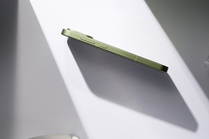 一加手机侧边 · 绿色一加手机侧边,展示按键