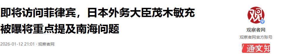 2026-01-12 21:01·不雅察者网 行将拜谒菲律宾,日本外务大臣茂木敏充被曝将要点说起南海问题