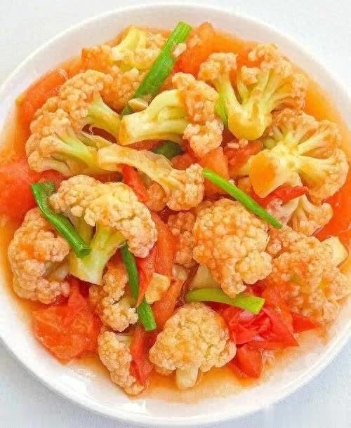材料:花菜200克;番茄2个(约200克);大蒜2瓣;姜末1茶匙;青葱1根;盐适量;白胡椒粉适量;食用油适量;酱油1汤匙
