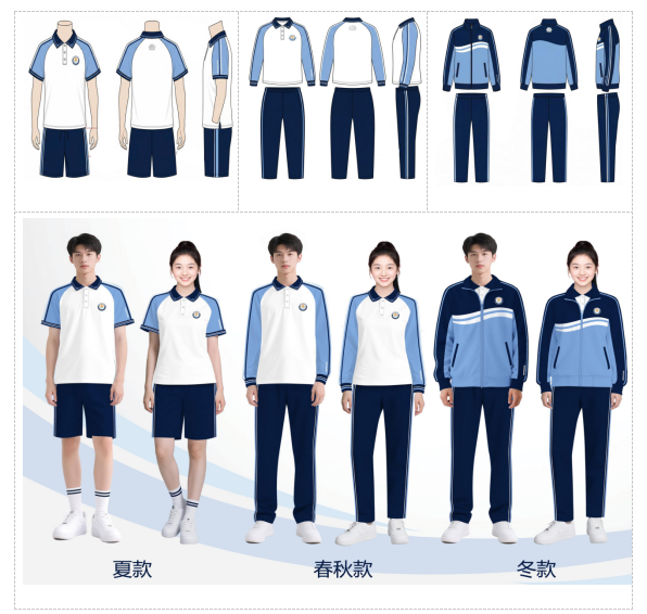 “海韵芳华”系列战胜假想灵感源自海洋及吴川的活力氛围,以蓝色为主调,旨在展现学子的活力与朝气,契合吴川打造“活力、怒放、生态、斯文、幸福”的当代化滨海城市理念。含夏装、春秋装、寒衣三款,上衣采纳宽松的版型假想,裤采纳松紧腰假想,衣着舒坦、陋劣穿脱且妥贴不同体型。总体用料兼顾亲肤透气吸汗与耐磨抗皱速干,能有用交接吴川各个季节的天气,尊龙国际妥贴《中小学生战胜》(GB/T31888-2015)等有关国度依次。
