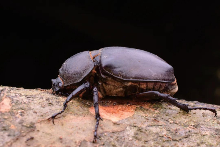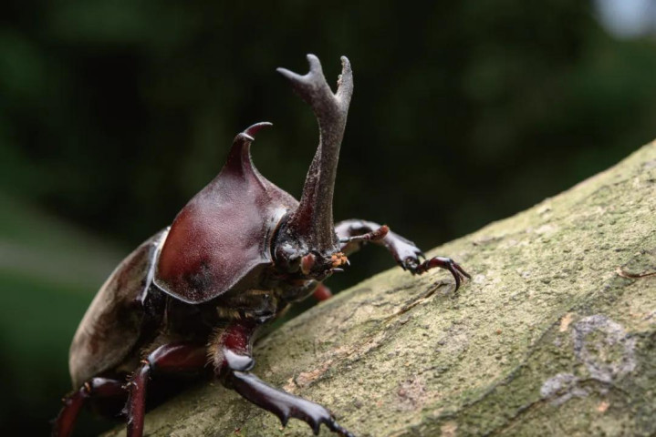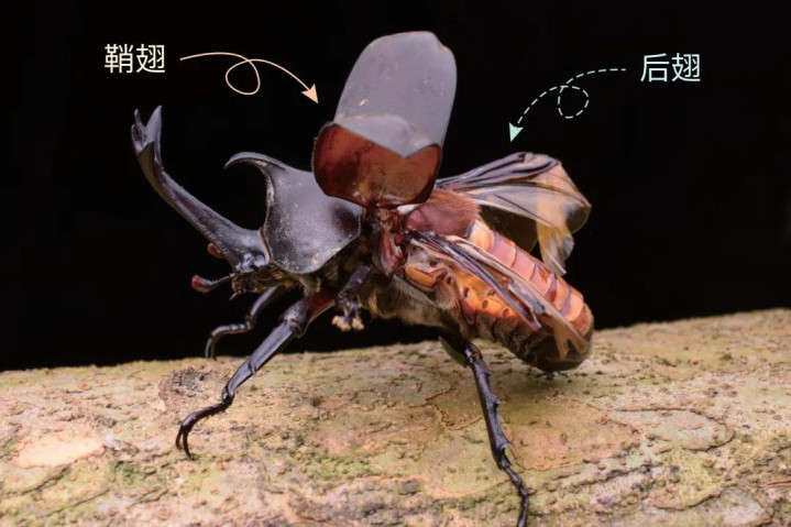独角仙有一双坚忍的鞘翅,下面藏着透明的后翅。独角仙不错用后翅进行遨游,不外它们飞起来的样貌有些笨笨的,声息也不小。