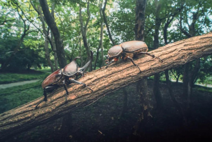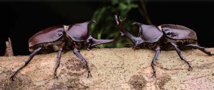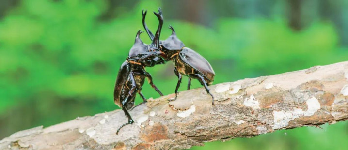 雄性独角仙为了争夺食品和伴侣,平素开启“角力大赛”。它们的犄角抵在通盘,偷偷用劲,谁皆不退一步。