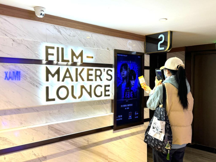 不雅众在影厅外拍照打卡。新华社记者邢拓摄