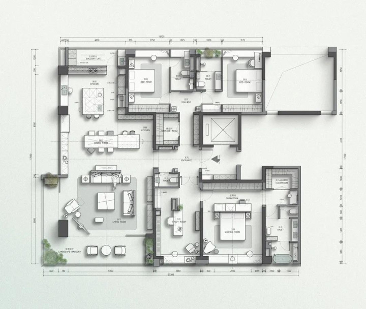 但许多东说念主住大平层的家里并莫得这样多东说念主,3-4口东说念主的情况最多,这样的话面积越大的屋子闲置的处所就越多,冷清感就越强。